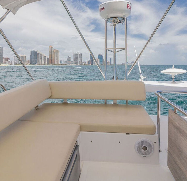 Amazing 42 Azimut Fly Bridge yacht available in Miami. This yacht from 2017 is brand new and very confortable! It can allowed up to 10 guests on board. You will find two bedrooms for your confort with one head bathroom. This yacht is Italian styling at its best in a midsize motoryacht. This yacht is perfect for entertaining and cruising. With your friends or your family, you are going to enjoy your day! Miami is one of the greatest area for any water activities or even for having a resting and calm day.