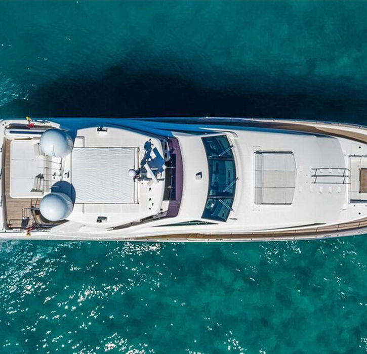 This gorgeous vessel combines innovation with contemporary designs featuring clean external lines enhanced by the use of color. The large windows and wide interior spaces provide abundant sunlight. The Ferretti combines all the comforts of home and the pleasures of a luxury vacation on a beautiful yacht. Has jet ski. 5 staterooms 1 master 2 VIP and 2 twin room.